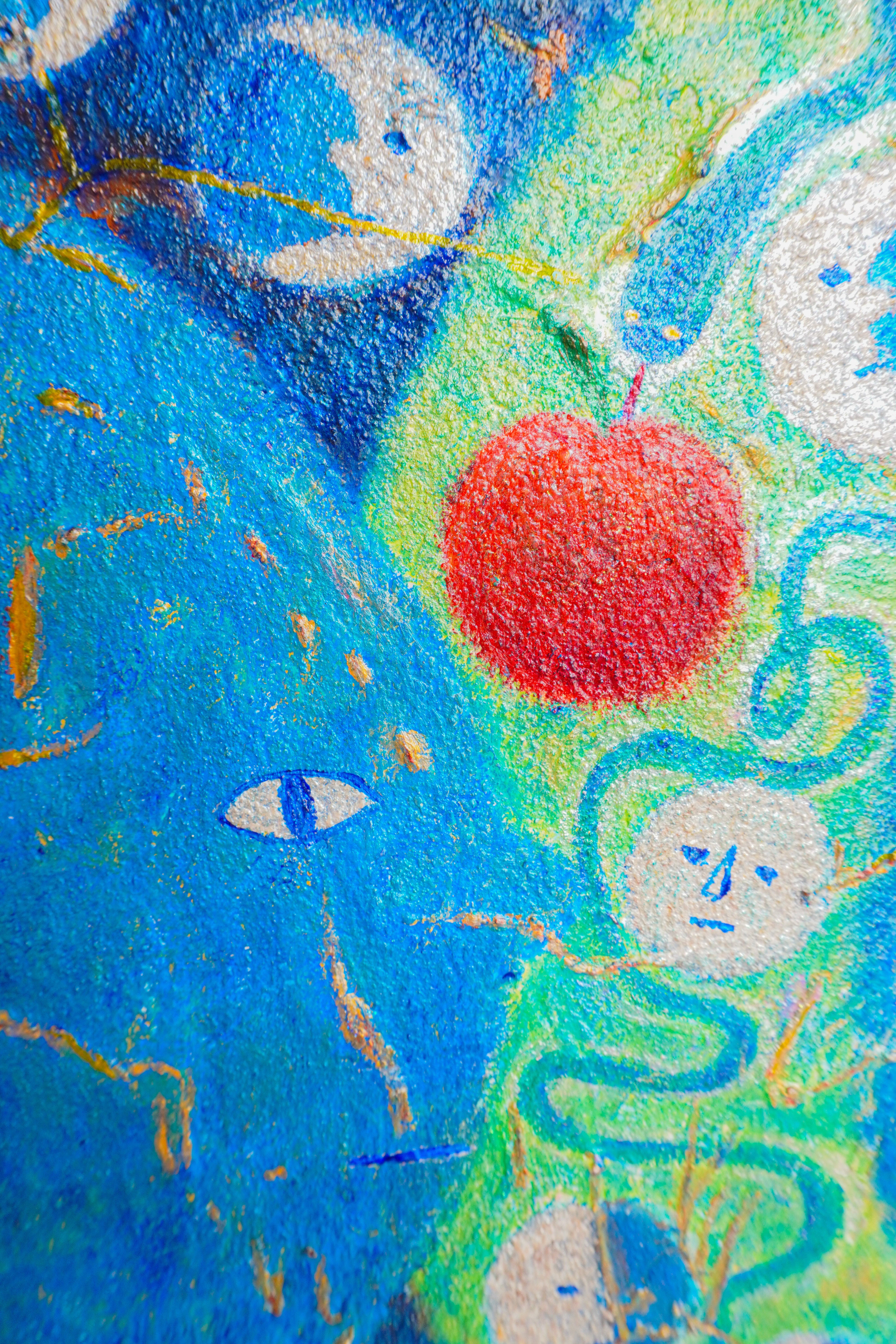 左側にひっそり描かれた赤い果実は、